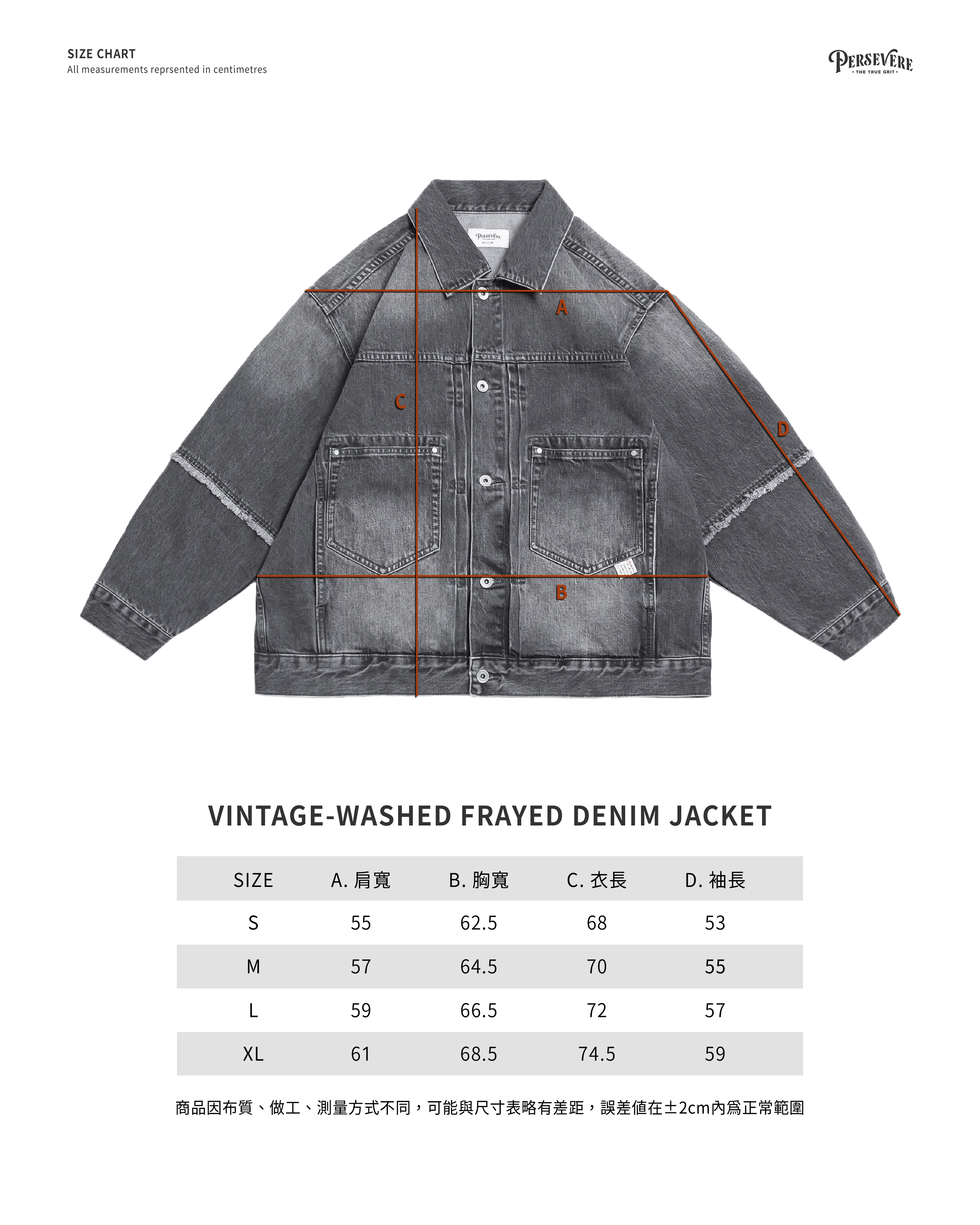 XL:胸寬 68.5 / 肩寬 61 / 袖長 59 / 衣長 74.5